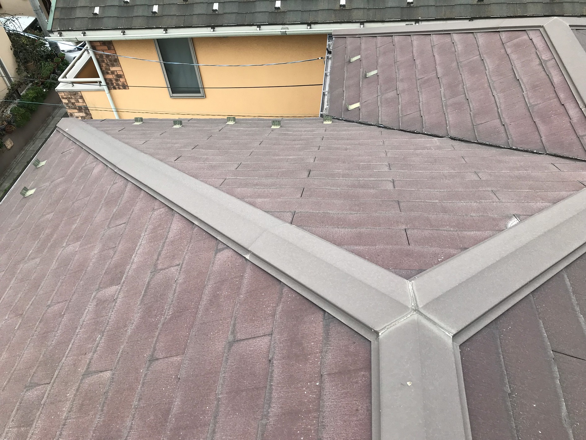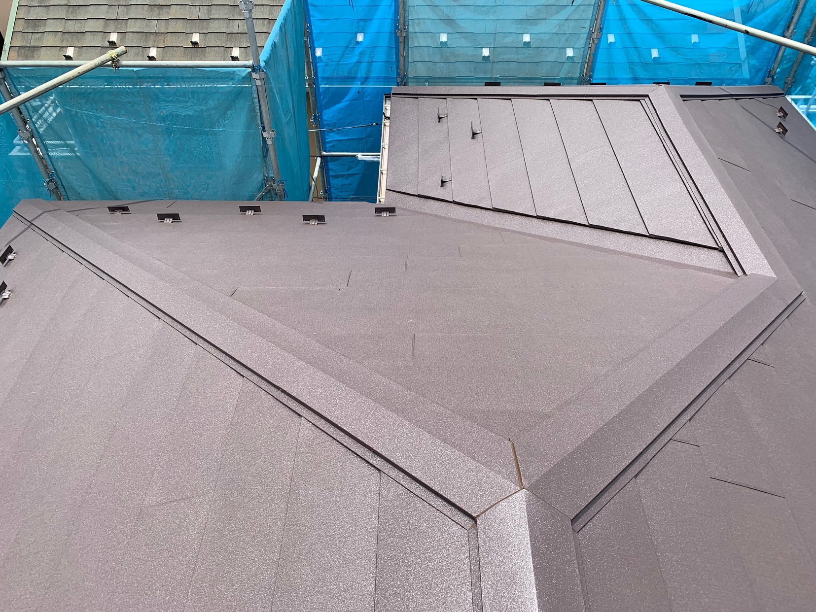 富士見市K様邸 塗装不可のパミール屋根材にガルバリウム屋根を重ね葺きしました。