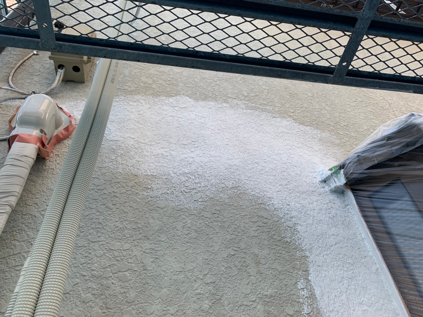 本日は新規現場から、塗装前のクラックの補修のお知らせ。サイディングとは違い、細かなヒビ割れを見つけ、しっかりと補修をしています。