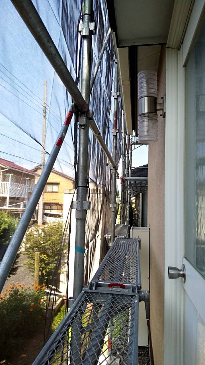 埼玉県川越市 I様邸 屋根、外壁塗装工事が着工しました。今回の現場から足場廻りの飛散防止シートを黒に変更しました。よく工事現場で見かけるのが青か緑のシートで囲われていますが工事期間中に太陽光でシート色が反射して塗装の色確認がしづらい時があります。そこで弊社ではより一層正確な施工ができ、なおかつお客様が工事期間中に視界を塞がず少しでも圧迫感が出ないように透過性の優れた黒メッシュシートを基本使用にしました。