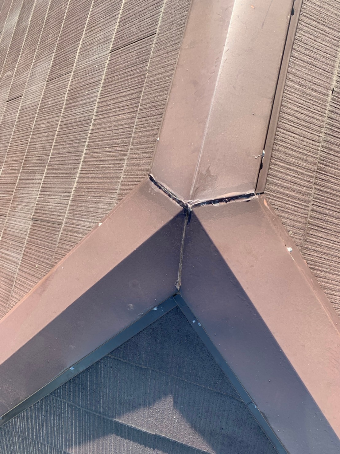 新築時から外壁塗装工事が初めてのK様邸。屋根板金を抑えている釘もお家の老朽化とともに飛び出てしまっていたり、屋根上についている棟板金の釘も飛び出てきてしまっています。