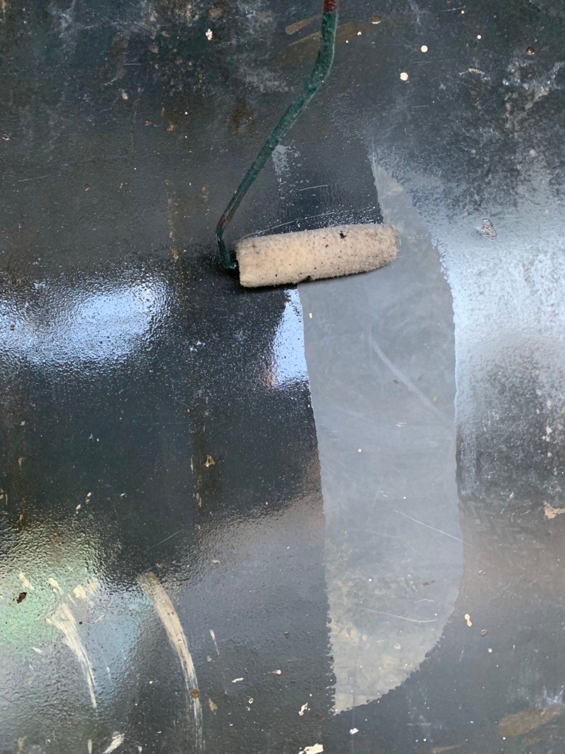 コーキング材を完全に乾燥させ、防水塗料専用のプライマーを塗布し、ベランダ床の防水塗装準備完了です。