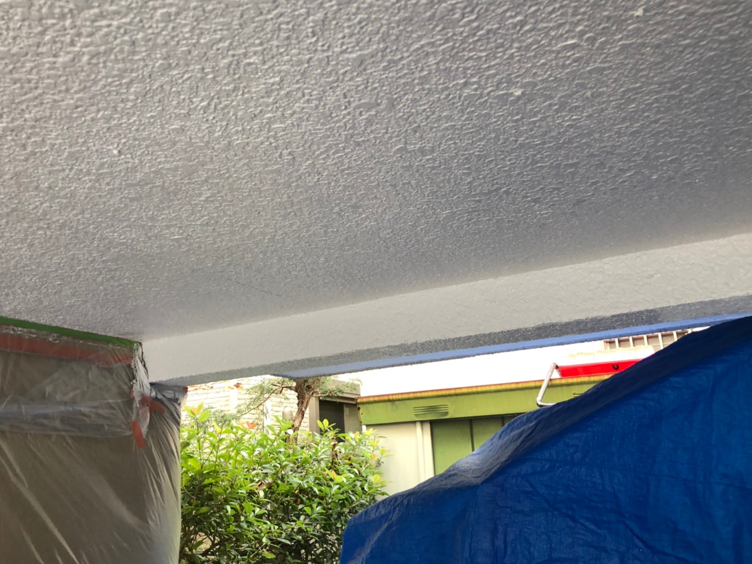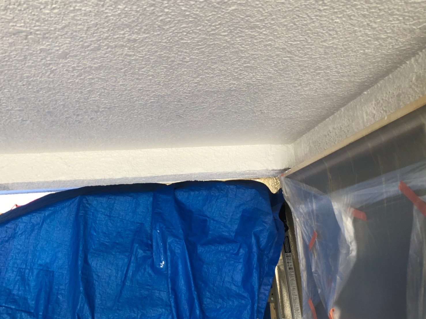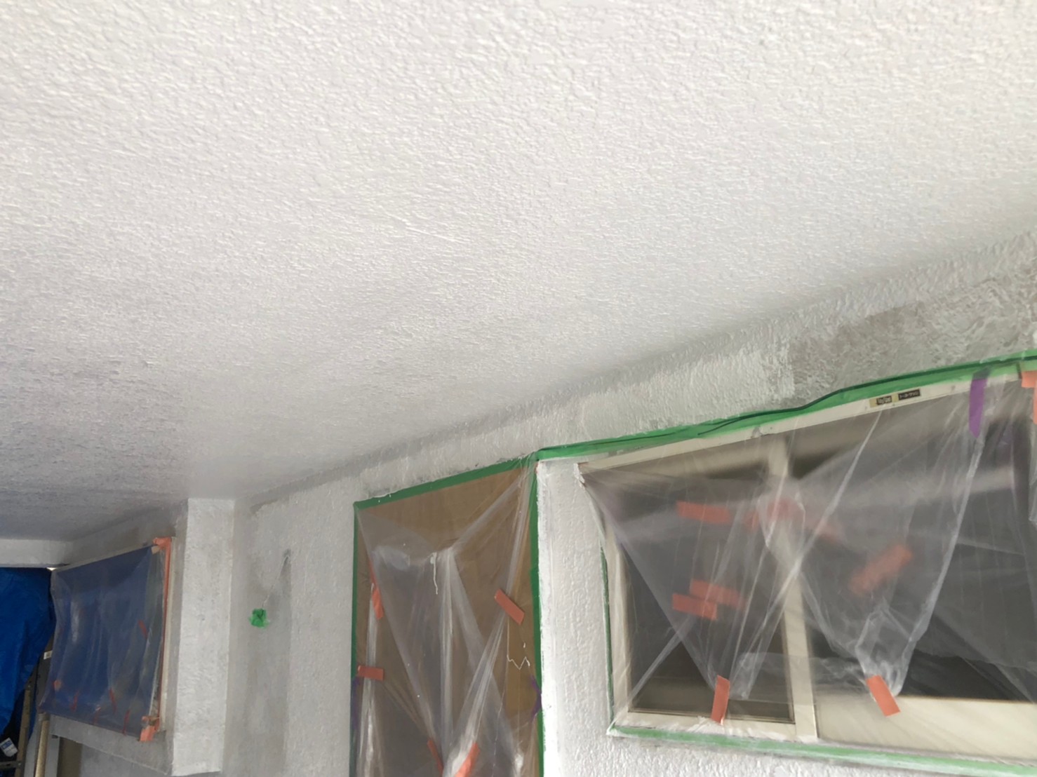 本日も引き続き川越市のK様のお宅にて外壁(モルタル)の下塗りと天井の中塗り作業をしてきました。