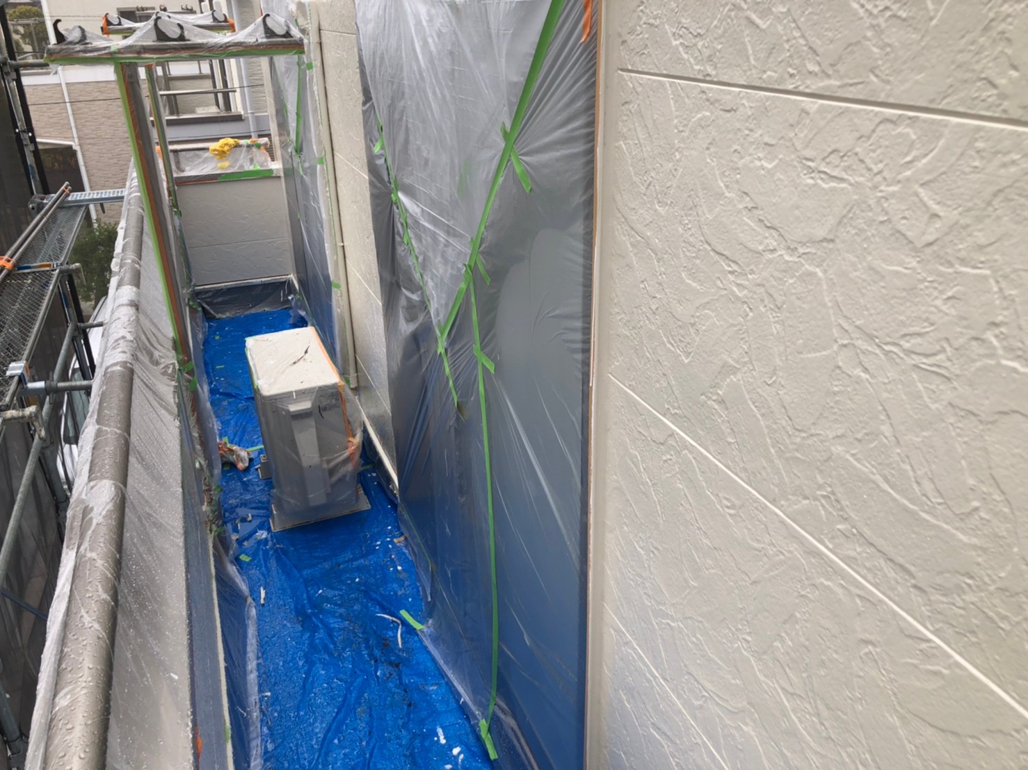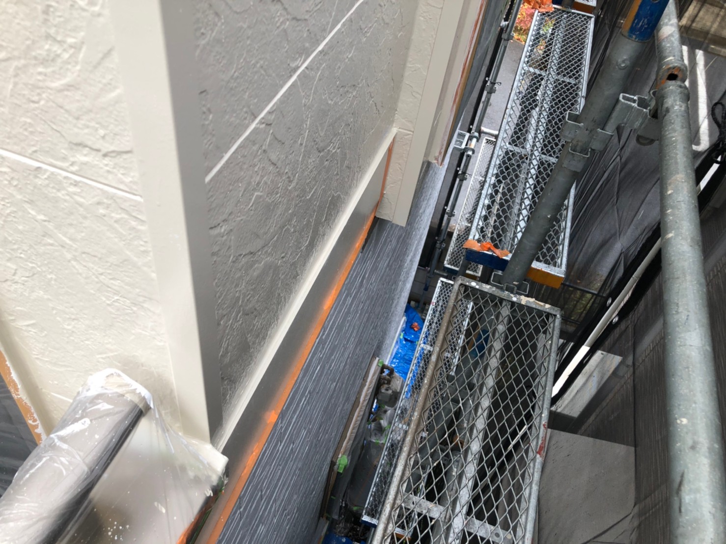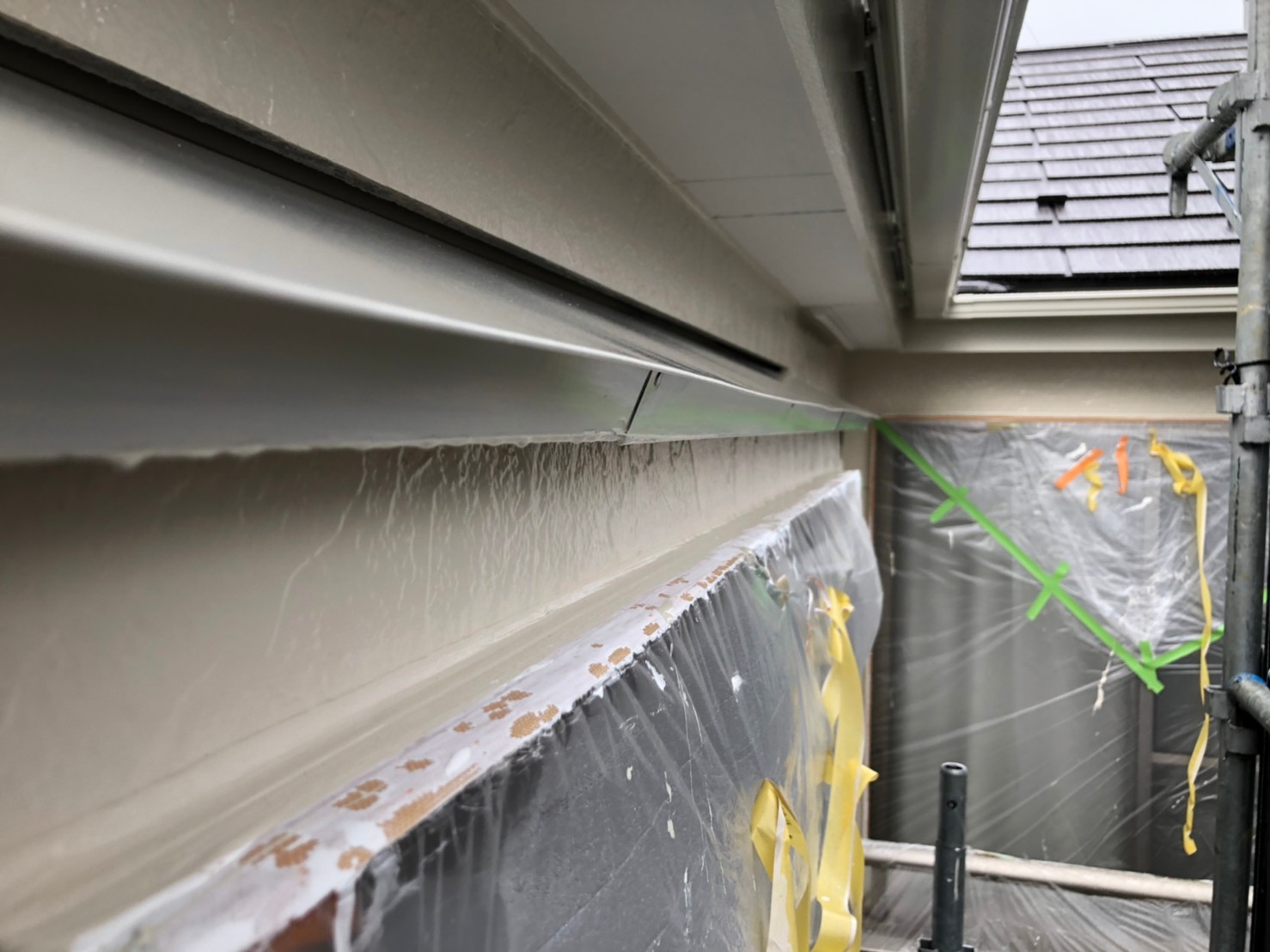 現在進行中のO様邸にて屋根塗装により色が付き、外壁も職人さんの手によって色がついていてかなり綺麗に、順調に進んでおります!