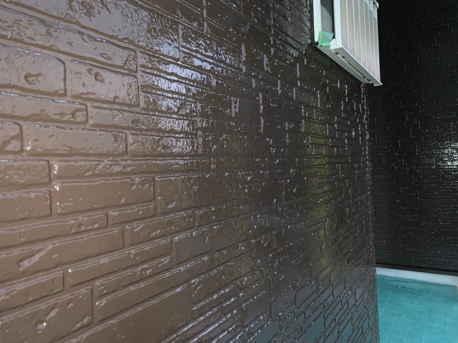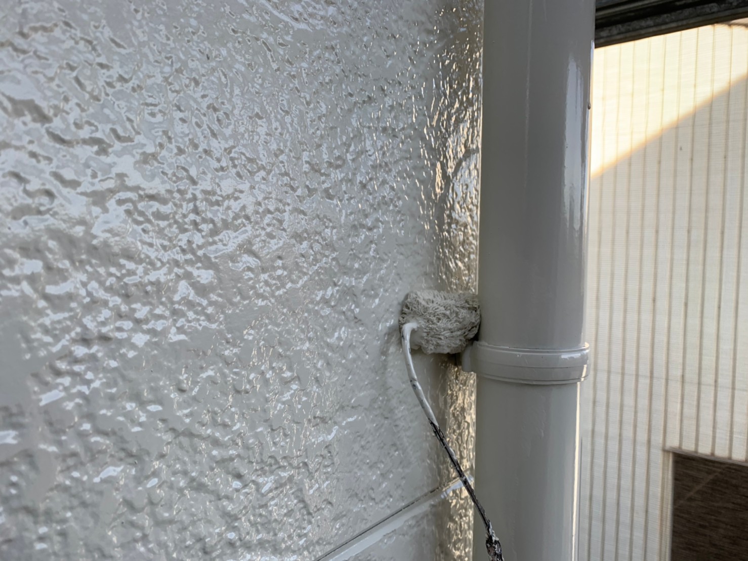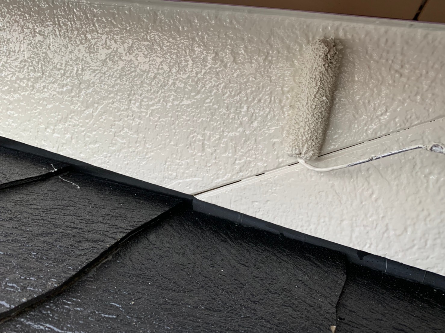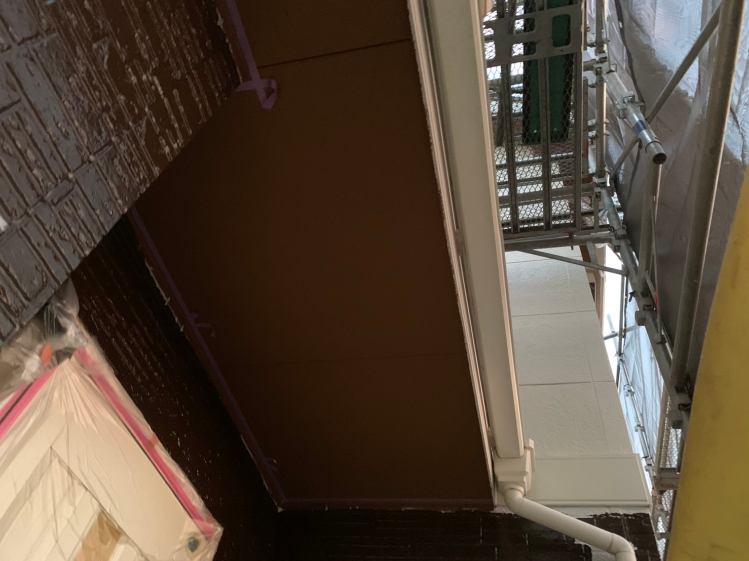 屋根や外壁をはじめ、軒天井や雨樋、破風板、霧除けなど施主様に決めていただいた色が付き、大体の色分けがはっきりしてきました!