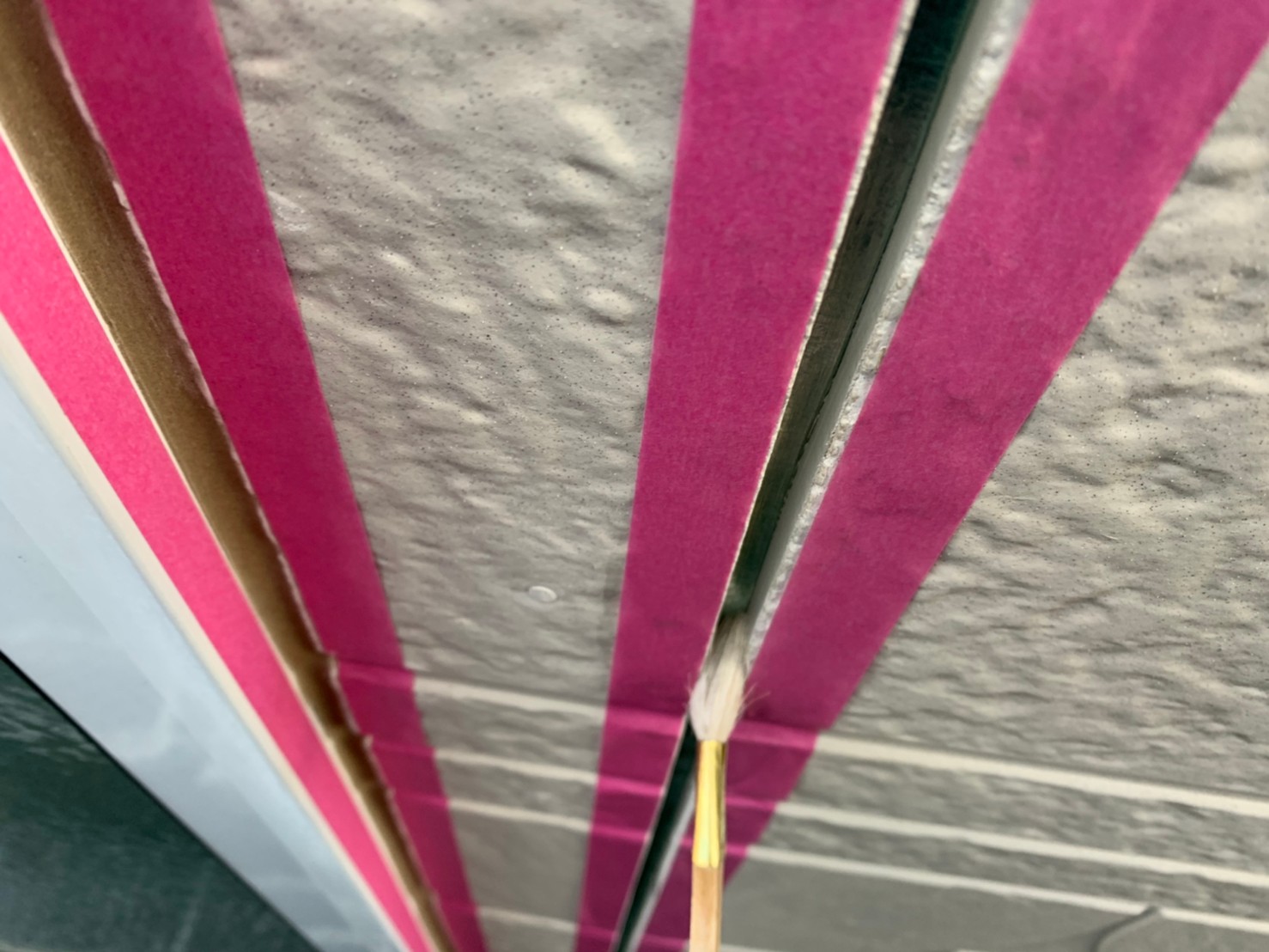 外壁材の継ぎ目にあるコーキングというゴム素材の材料が新築時に施工されています。新築時はゴムが柔らかく雨水の侵入や外壁材の割れを防ぐ効果がありますが、築7年から10年になると経年劣化でゴムが硬くなり雨漏りの原因になりかねない為、交換をお薦めします。塗装作業をする際は古いコーキング材を剥がし、新しいコーキング材に交換をしてから塗装作業に入ります。