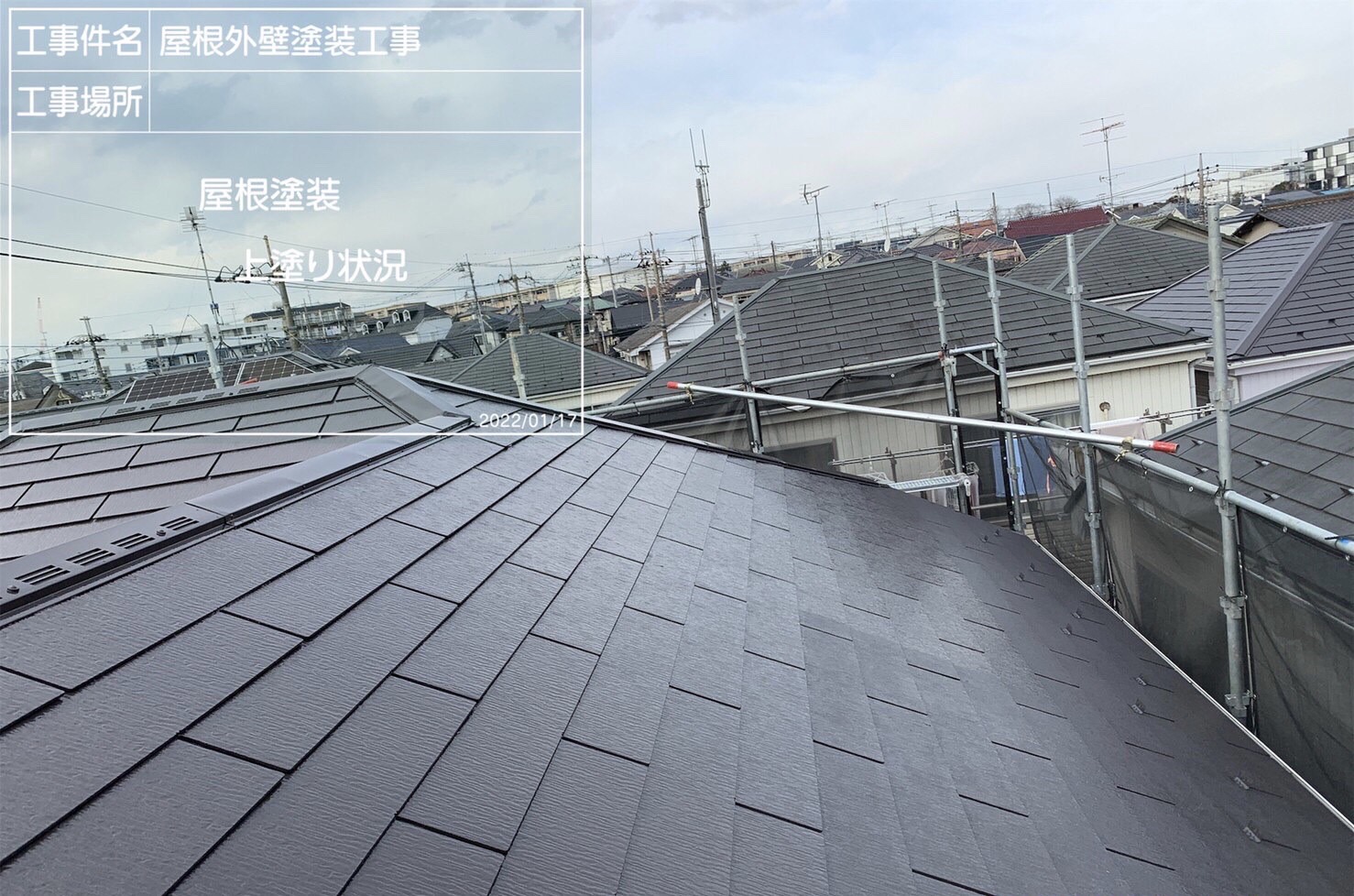 埼玉県ふじみ野市T様邸 屋根上塗り塗装作業になります。