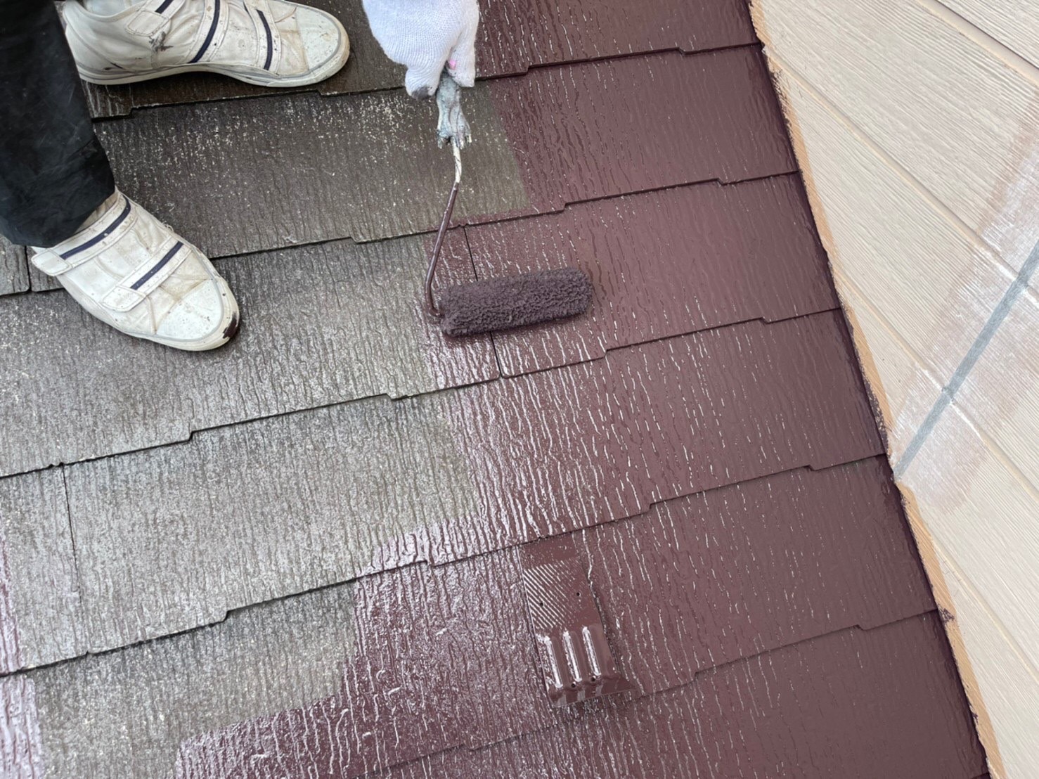 埼玉県川越市D様邸 屋根中塗り塗装作業になります。