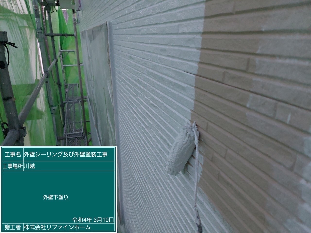 埼玉県川越市F様邸 外壁下塗り塗装作業になります。