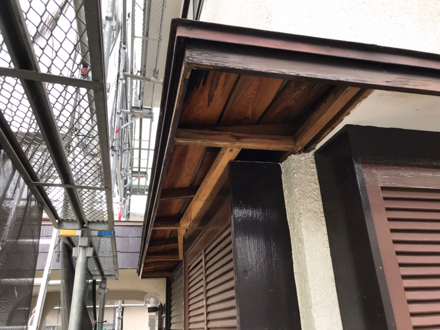 色褪せや剥がれなどの傷んだ軒天井を新しい板に張り替え、家内部の劣化を防ぎます。