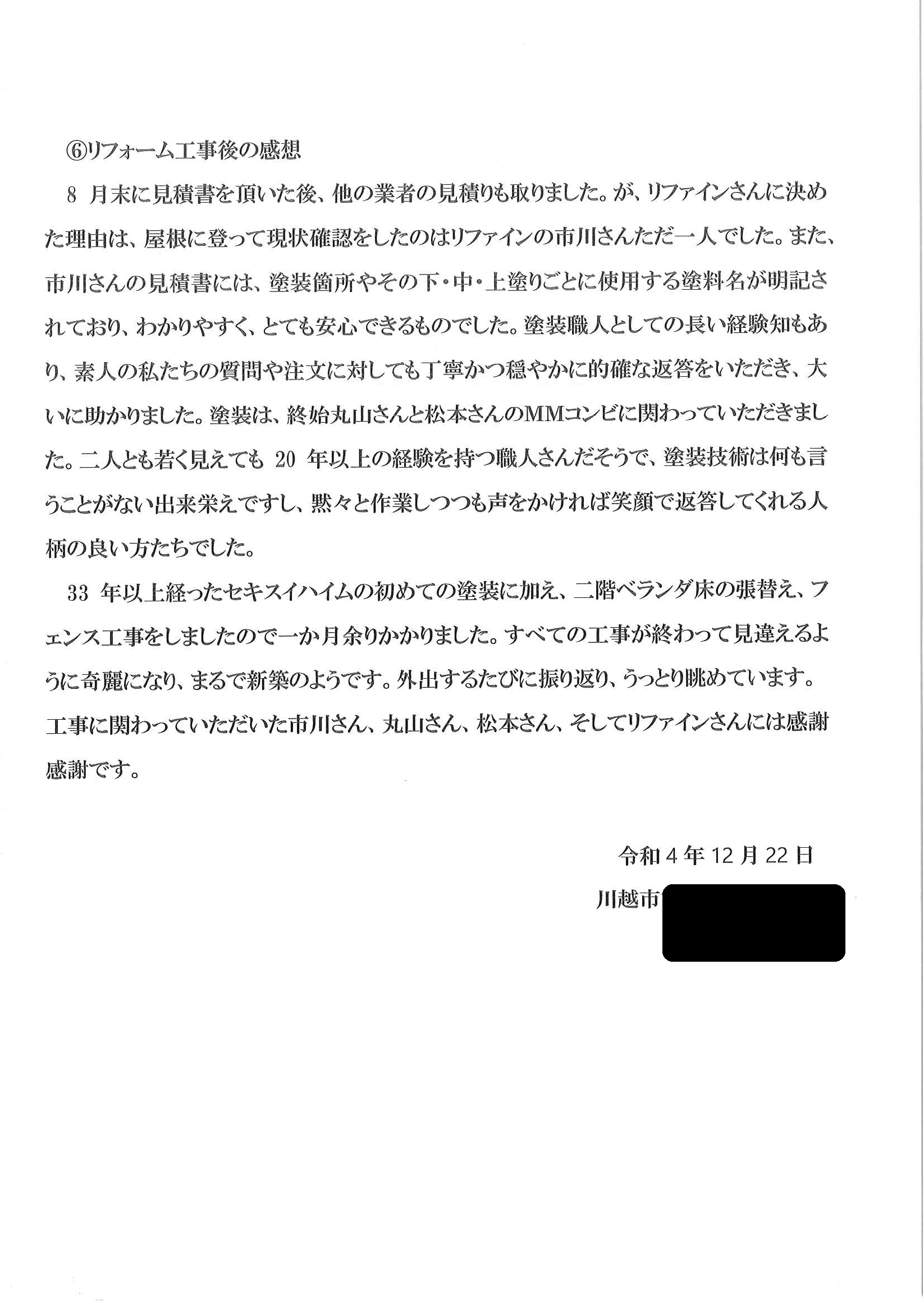 お客様の声【川越市】